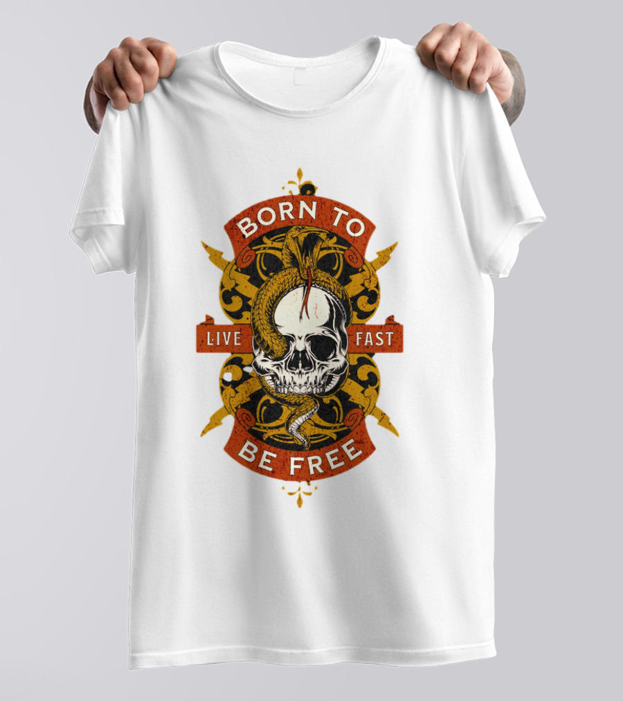 Born To Be Free Live Fast Skull With Snake And Ornate T-Shirt