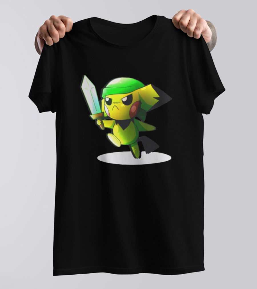 Pikachu Dressed As Link From The Legend Of Zelda With Sword In Hand T-Shirt