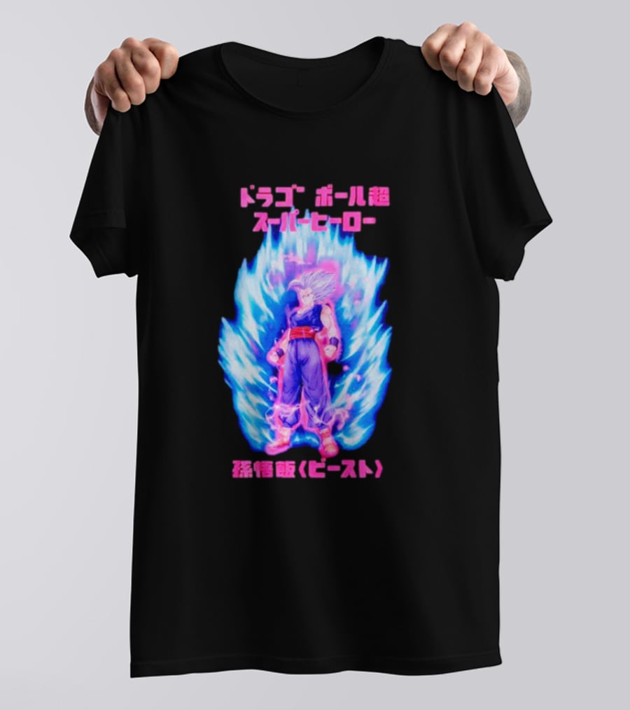 Dragon Ball Super Hero Gohan Beast Mineral Wash Shirt made from 100% pre-shrunk ring-spun cotton, unisex regular fit based on U.S. standard sizing. The shirt is designed, cut, sewn, and printed in the United States. Available in sizes S-5XL.