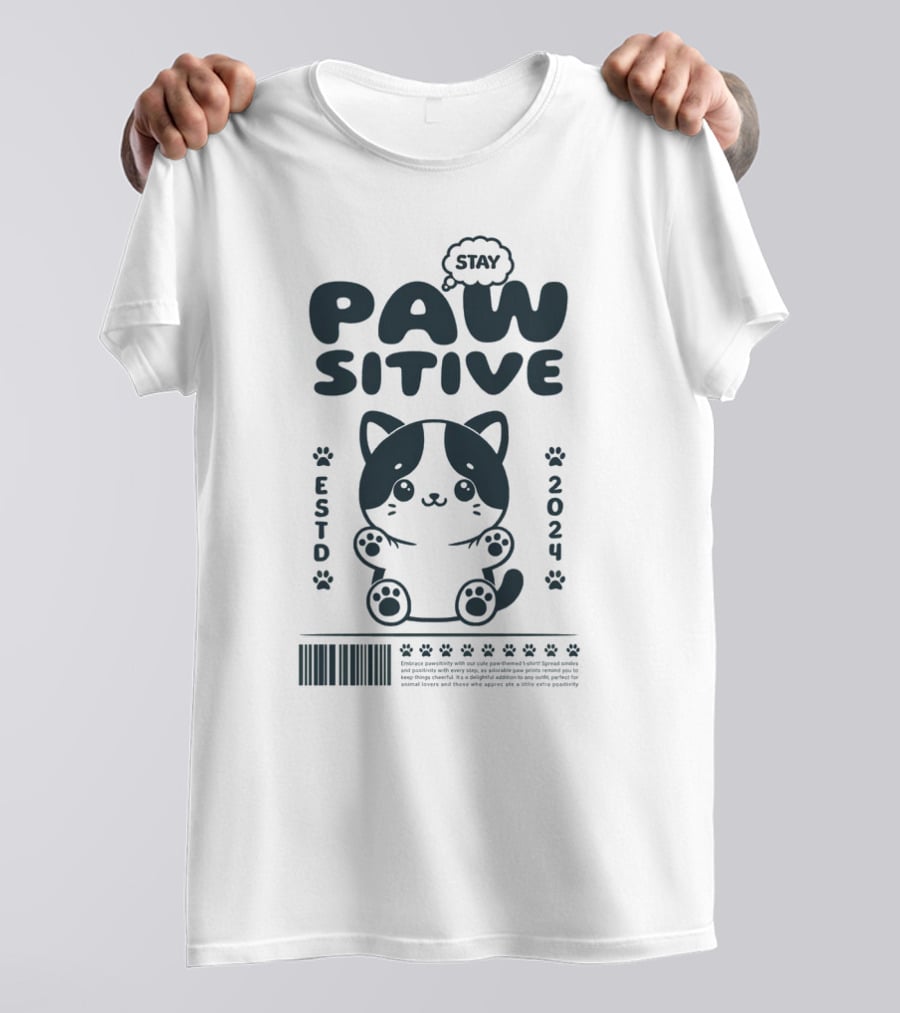 Stay Pawsitive Cute Cat ESTD T-Shirt