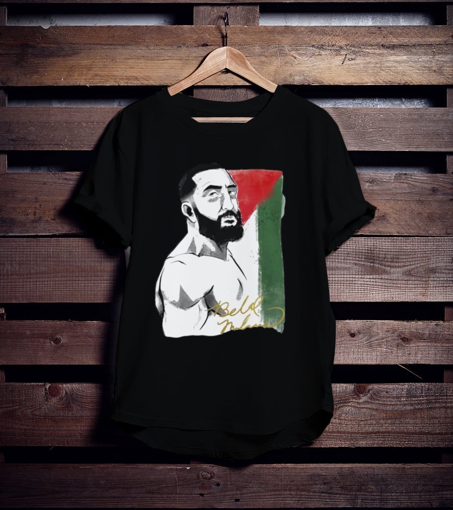 Remember The Name Belal Muhammad Palestinian Flag Shirt made from 100% pre-shrunk ring-spun cotton, unisex regular fit based on U.S. standard sizing. The shirt is designed, cut, sewn, and printed in the United States. Available in sizes S-5XL.