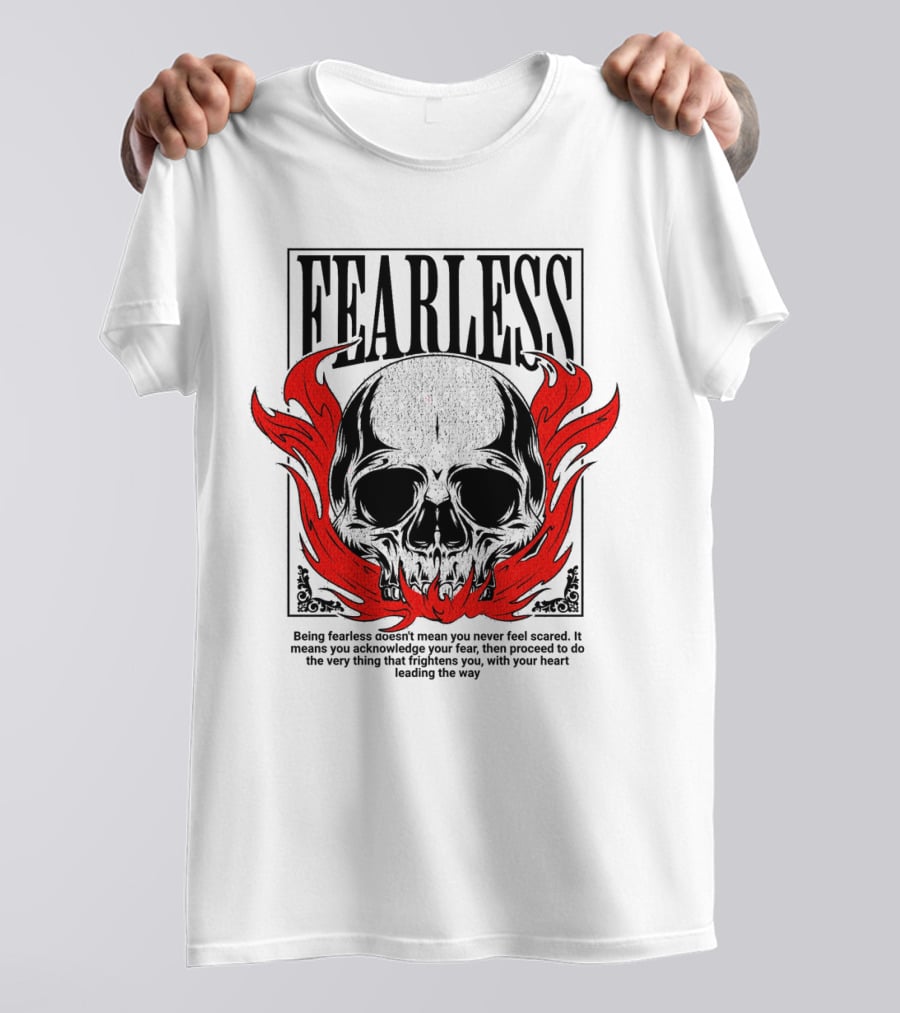 FEARLESS Skull With Red Flames Street Wear T-Shirt