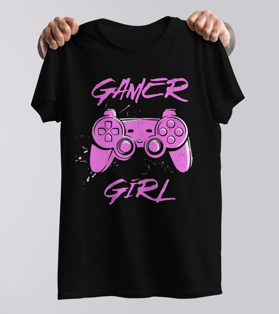 Gamer Girl Pink Controller Shirt made from 100% pre-shrunk ring-spun cotton, unisex regular fit based on U.S. standard sizing. The shirt is designed, cut, sewn, and printed in the United States. Available in sizes S-5XL.