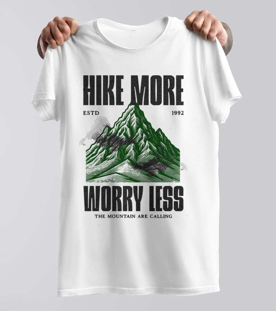 HIKE MORE WORRY LESS ESTD 1992 THE MOUNTAIN ARE CALLING Shirt made from 100% pre-shrunk ring-spun cotton, unisex regular fit based on U.S. standard sizing. The shirt is designed, cut, sewn, and printed in the United States. Available in sizes S-5XL.