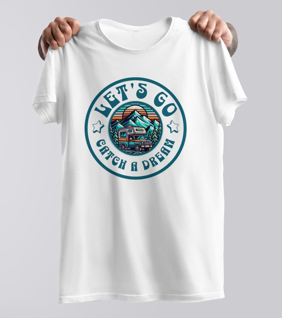 Let's Go Catch A Dream Adventure Camper Mountain Scene T-Shirt