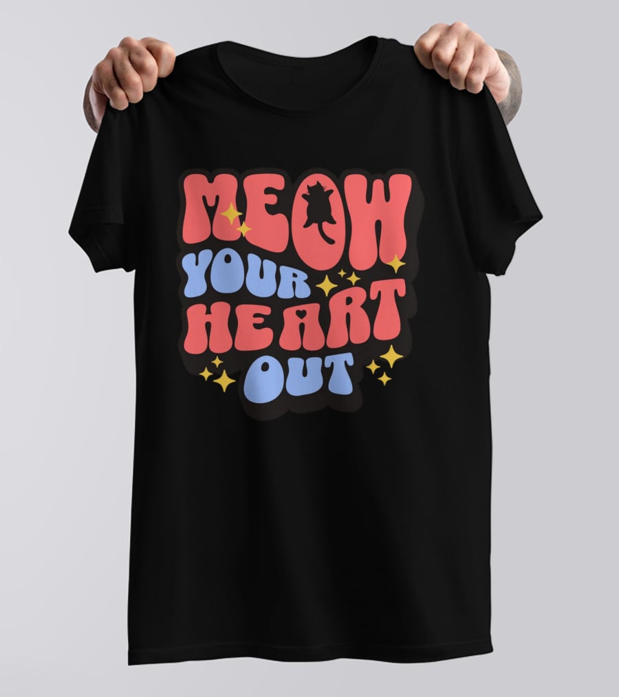 MEOW YOUR HEART OUT Retro Cat Stars T-Shirt