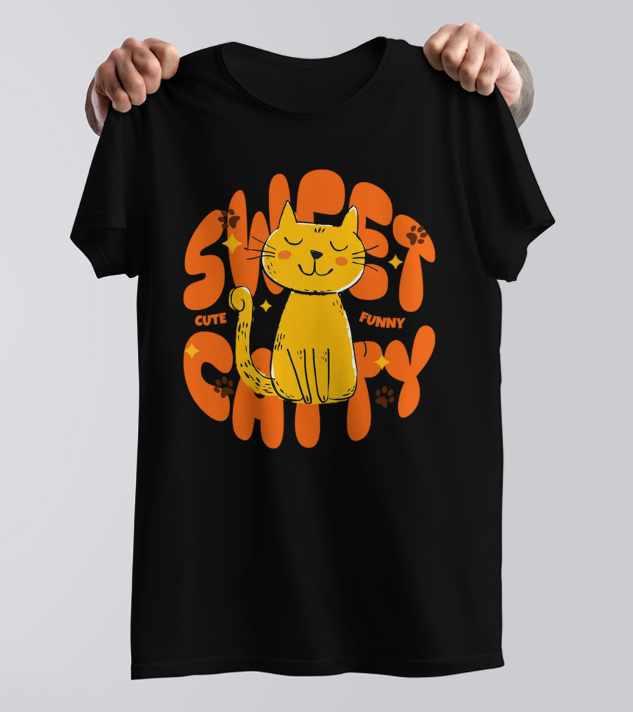 Cute Funny Sweet Cat Happy Yellow Cat With Paw Prints T-Shirt
