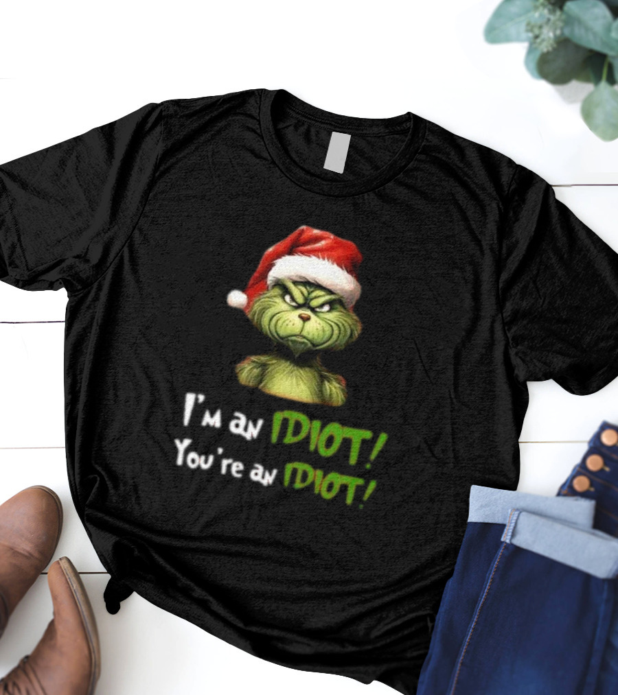Grinch Santa Hat I'm An Idiot You're An Idiot Christmas T-Shirt
