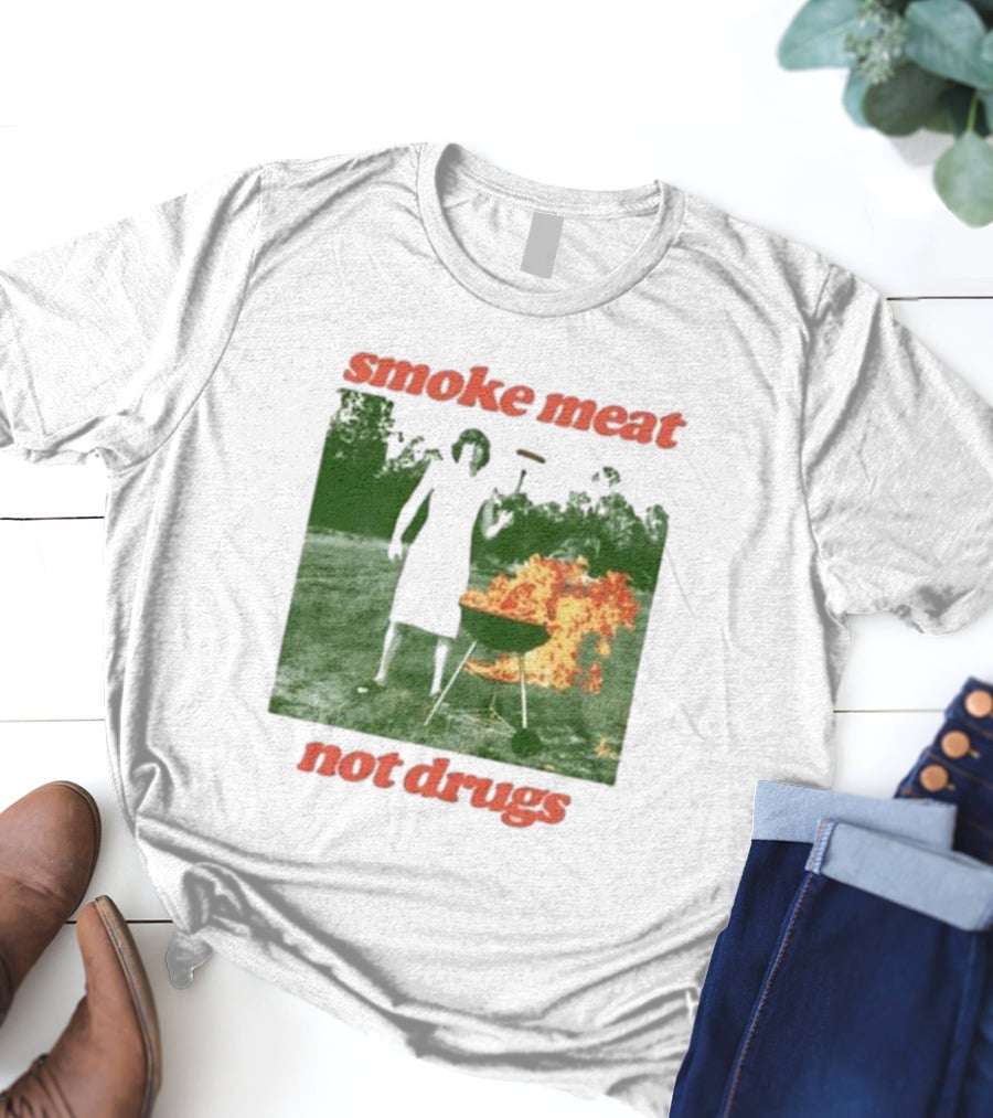 Smoke Meat Not Drugs Grilling Fire Green Scene T-Shirt