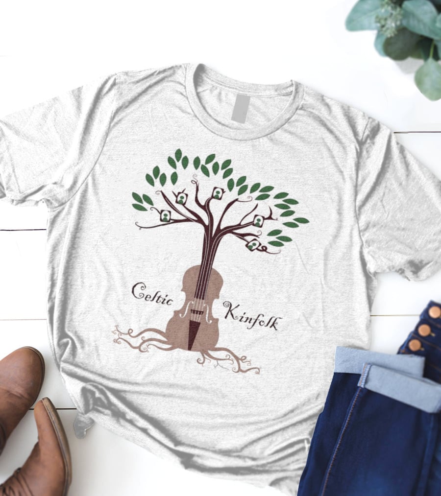 Celtic Kinfolk Tree with Guitar and Violin Motif Shirt made from 100% pre-shrunk ring-spun cotton, unisex regular fit based on U.S. standard sizing. The shirt is designed, cut, sewn, and printed in the United States. Available in sizes S-5XL.