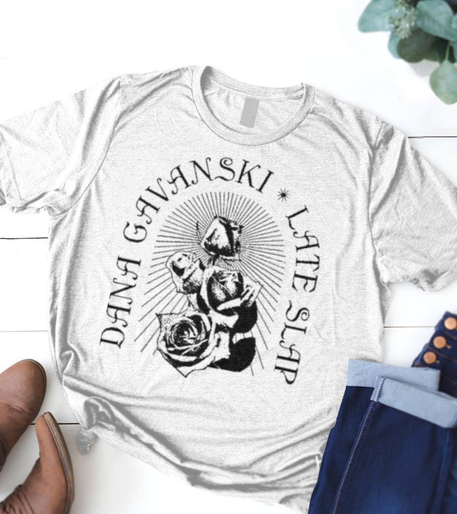 Dana Gavanski Late Slap Roses Shirt made from 100% pre-shrunk ring-spun cotton, unisex regular fit based on U.S. standard sizing. The shirt is designed, cut, sewn, and printed in the United States. Available in sizes S-5XL.