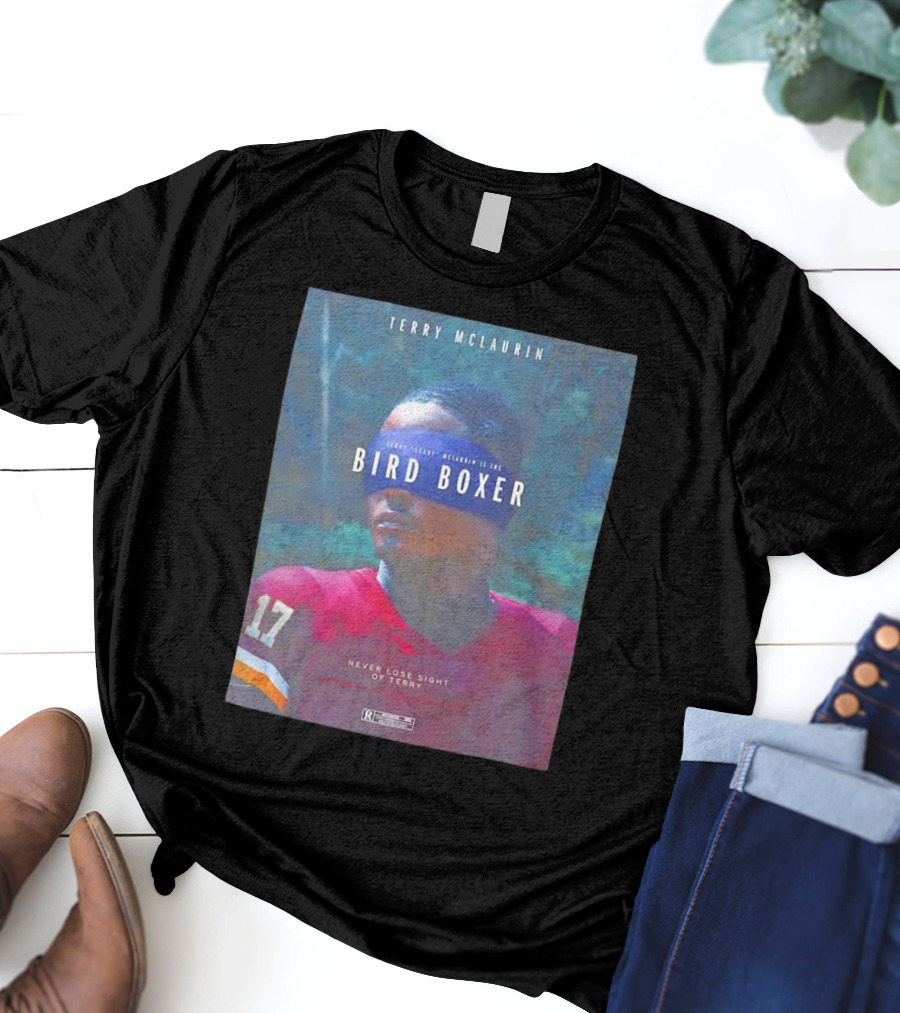 Terry McLaurin Never Lose Sight Bird Boxer Shirt made from 100% pre-shrunk ring-spun cotton, unisex regular fit based on U.S. standard sizing. The shirt is designed, cut, sewn, and printed in the United States. Available in sizes S-5XL.