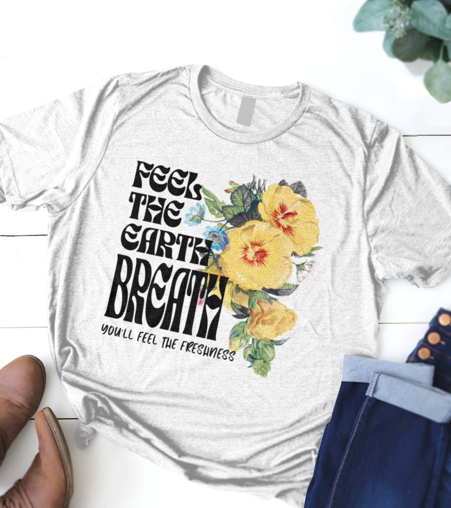 Feel the Earth Breathe You'll Feel the Freshness Boho Floral Shirt made from 100% pre-shrunk ring-spun cotton, unisex regular fit based on U.S. standard sizing. The shirt is designed, cut, sewn, and printed in the United States. Available in sizes S-5XL.