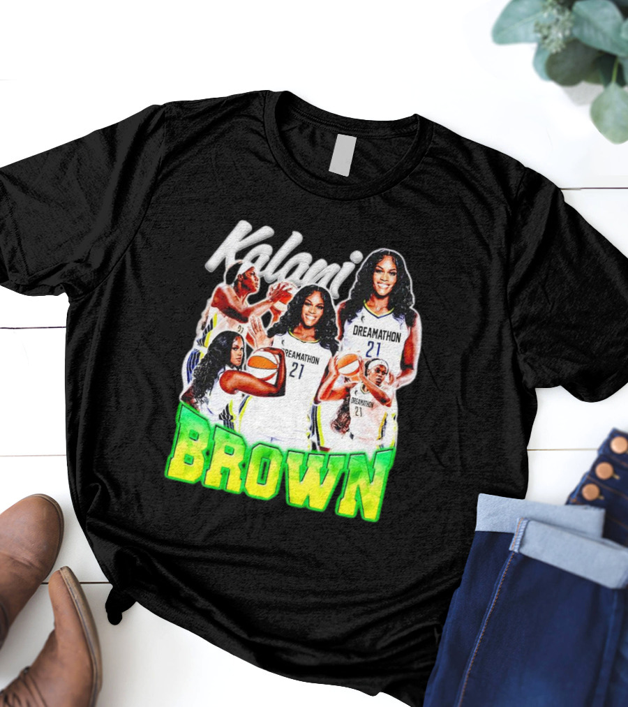 Kalani Brown Dreamathon 21 Basketball Legends Shirt made from 100% pre-shrunk ring-spun cotton, unisex regular fit based on U.S. standard sizing. The shirt is designed, cut, sewn, and printed in the United States. Available in sizes S-5XL.