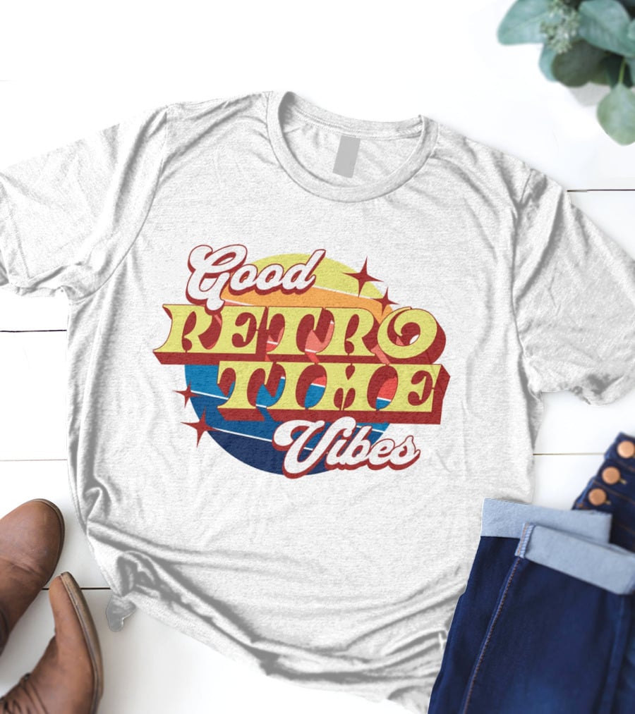 Good Retro Time Vibes Shirt made from 100% pre-shrunk ring-spun cotton, unisex regular fit based on U.S. standard sizing. The shirt is designed, cut, sewn, and printed in the United States. Available in sizes S-5XL.