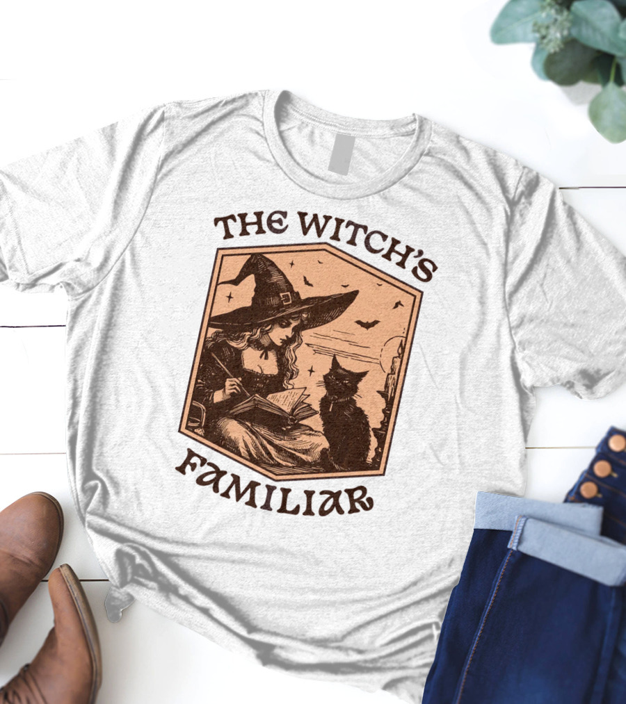 The Witch's Familiar Halloween Vintage Witch And Cat T-Shirt