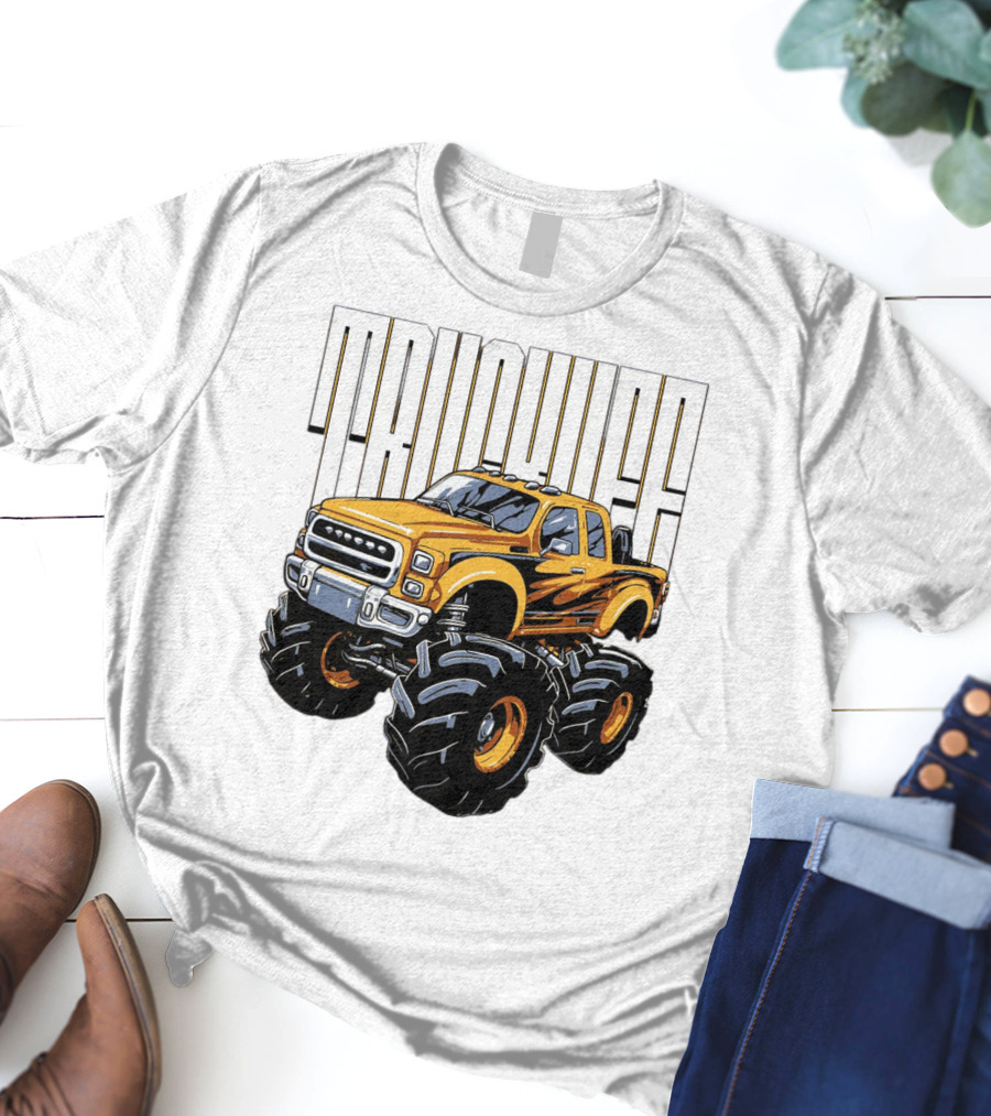 Trucklife Adventure Never Slowing Down Monster Truck Shirt made from 100% pre-shrunk ring-spun cotton, unisex regular fit based on U.S. standard sizing. The shirt is designed, cut, sewn, and printed in the United States. Available in sizes S-5XL.