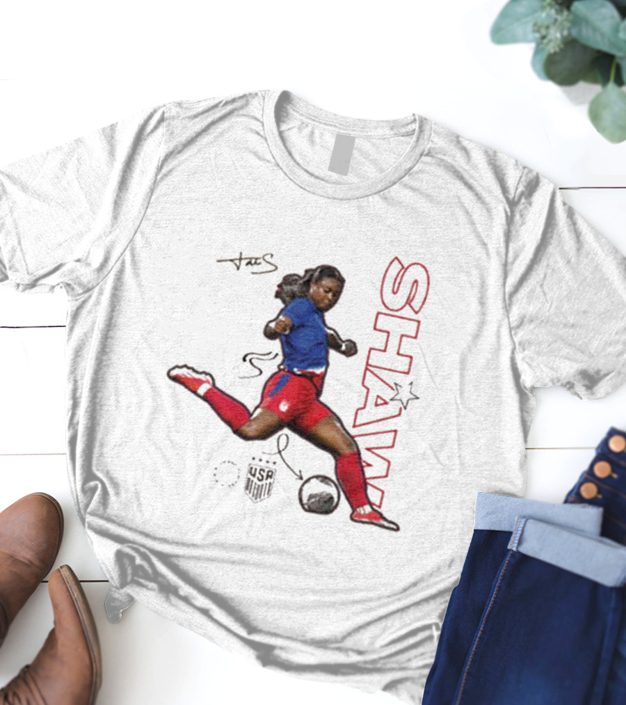 USWNT Jaedyn Shaw Signature Red And Blue Action Pose With Star T-Shirt