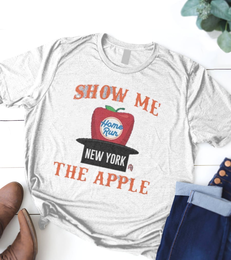 Show Me the Home Run Apple New York Shirt made from 100% pre-shrunk ring-spun cotton, unisex regular fit based on U.S. standard sizing. The shirt is designed, cut, sewn, and printed in the United States. Available in sizes S-5XL.