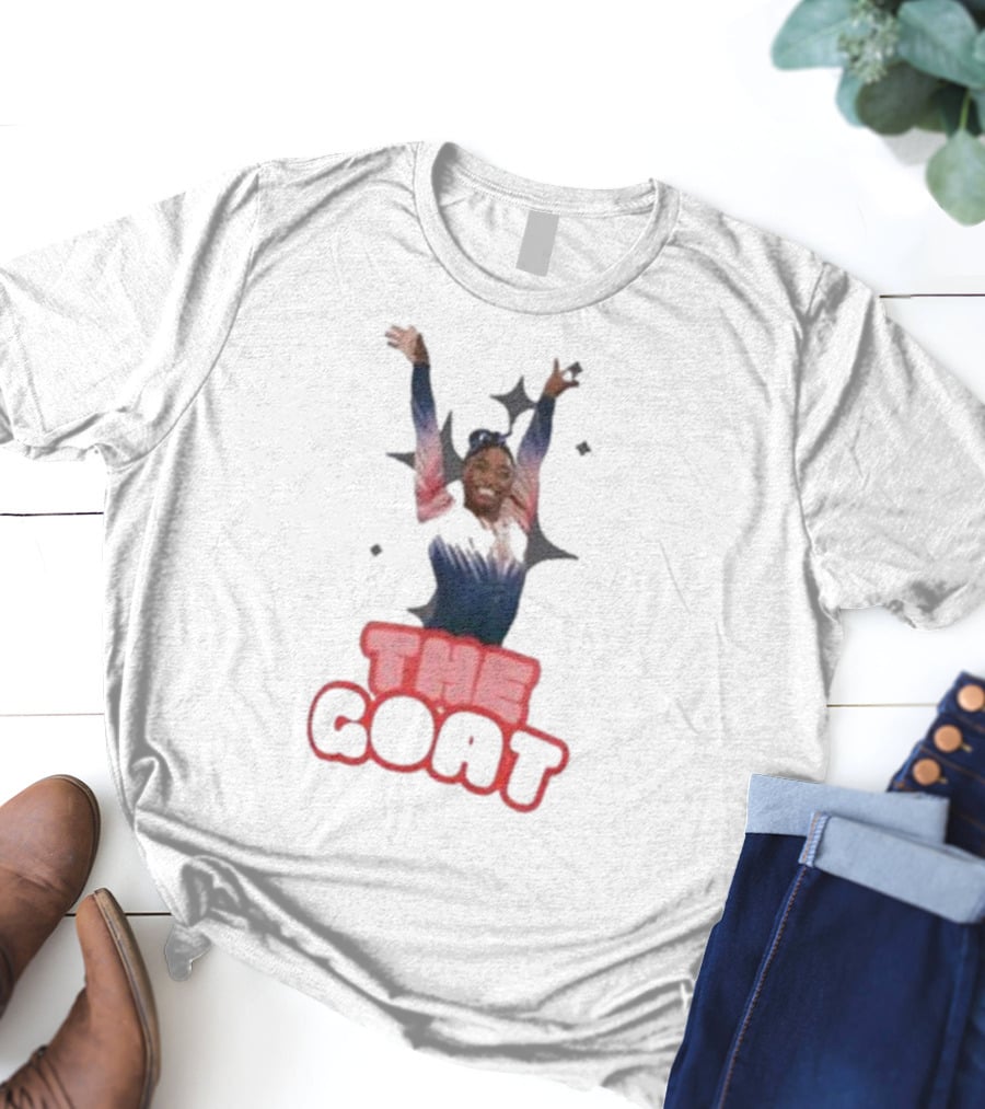 Simone Biles Team USA Gymnastics The GOAT Shirt made from 100% pre-shrunk ring-spun cotton, unisex regular fit based on U.S. standard sizing. The shirt is designed, cut, sewn, and printed in the United States. Available in sizes S-5XL.