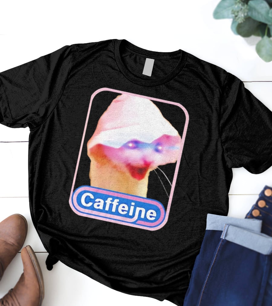 K45ink Caffeine Meme Cat With Glowing Eyes T-Shirt