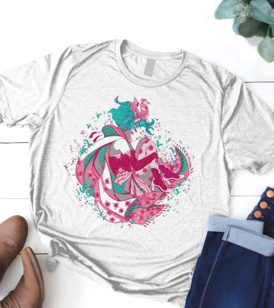 The Floating Garden Lovers in Bloom with Vibrant Floral Embrace Shirt made from 100% pre-shrunk ring-spun cotton, unisex regular fit based on U.S. standard sizing. The shirt is designed, cut, sewn, and printed in the United States. Available in sizes S-5XL.