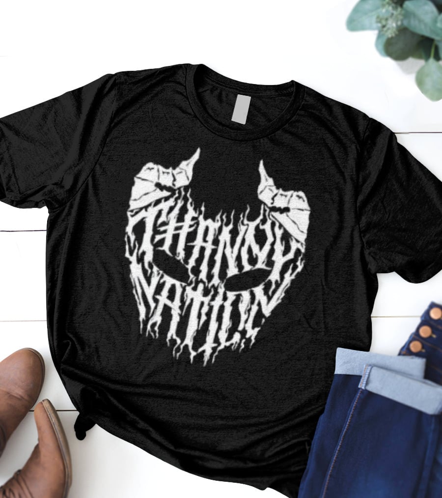 Thanny Nation Flame Text with Mask Shirt made from 100% pre-shrunk ring-spun cotton, unisex regular fit based on U.S. standard sizing. The shirt is designed, cut, sewn, and printed in the United States. Available in sizes S-5XL.