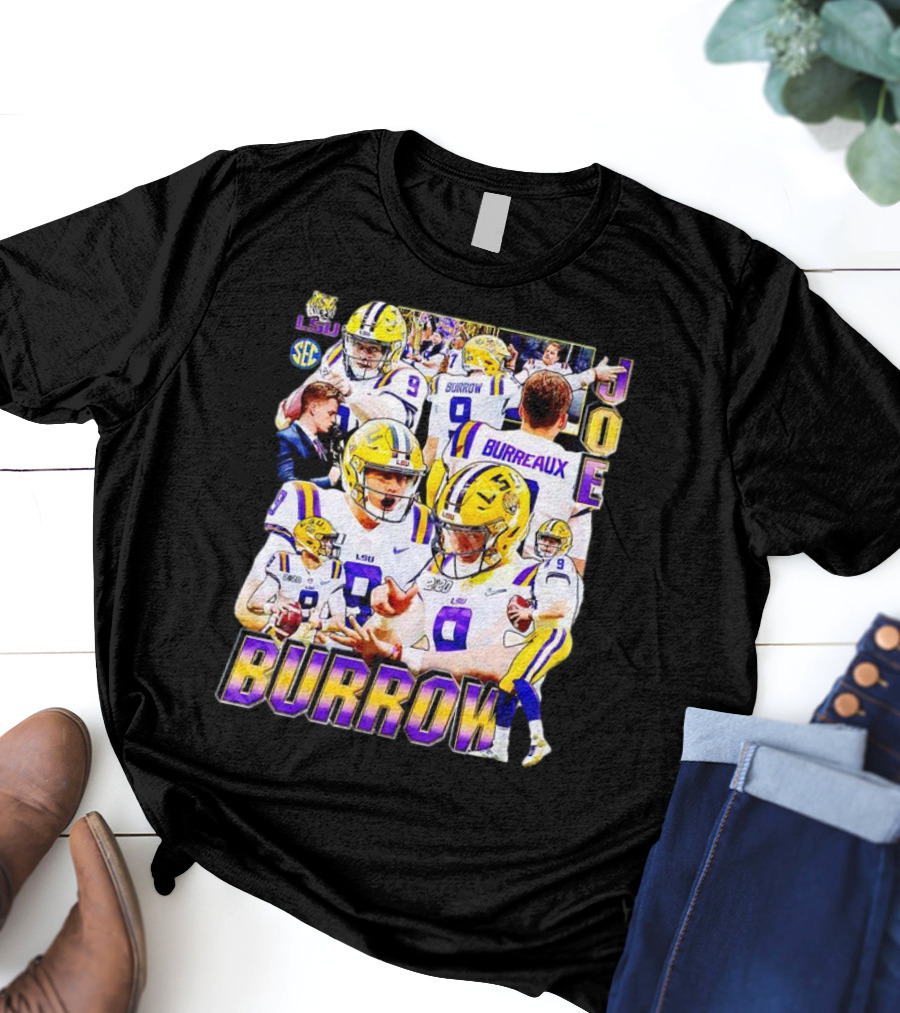 LSU Tigers Joe Burrow 9 SEC Football Burreaux Quarterback T-Shirt