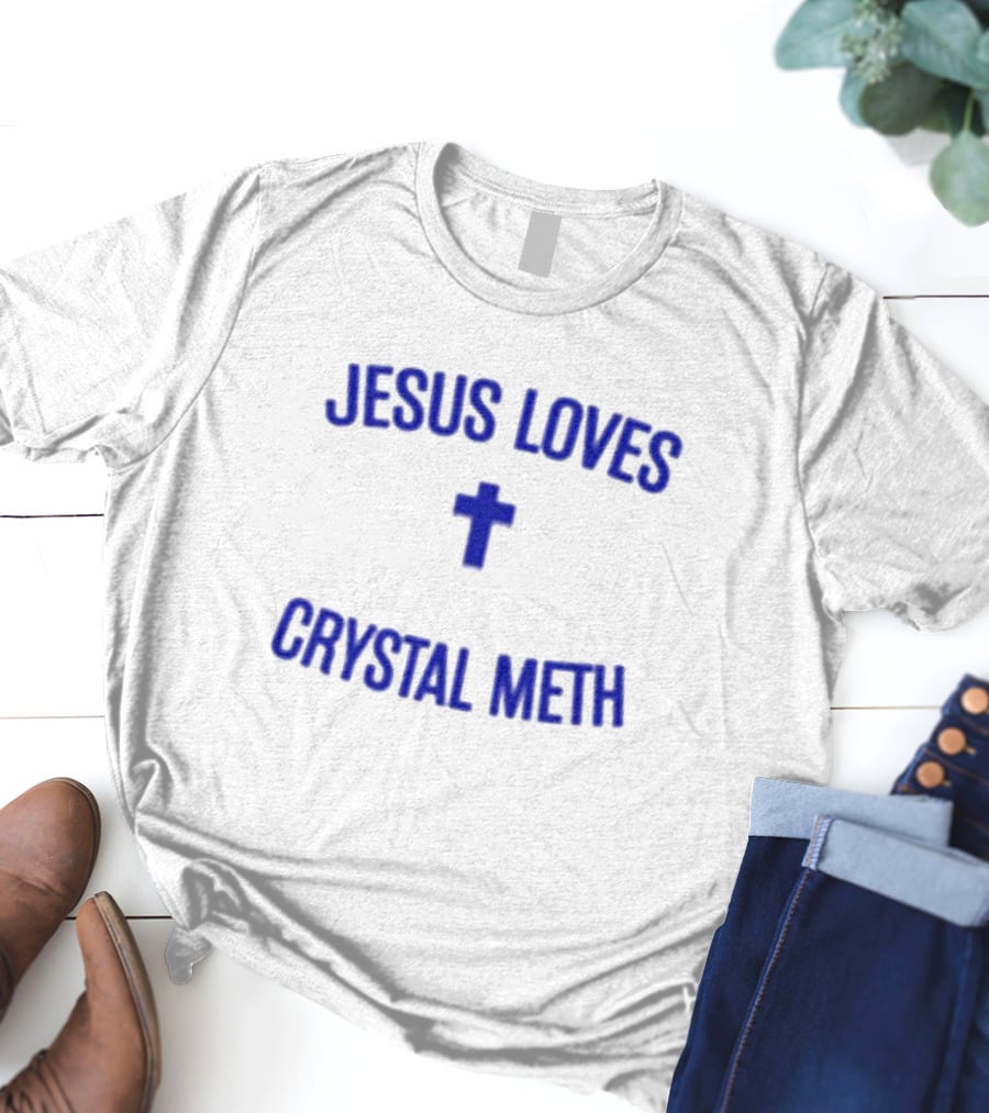 Jesus Loves Crystal Meth Cross Icon Christian T-Shirt