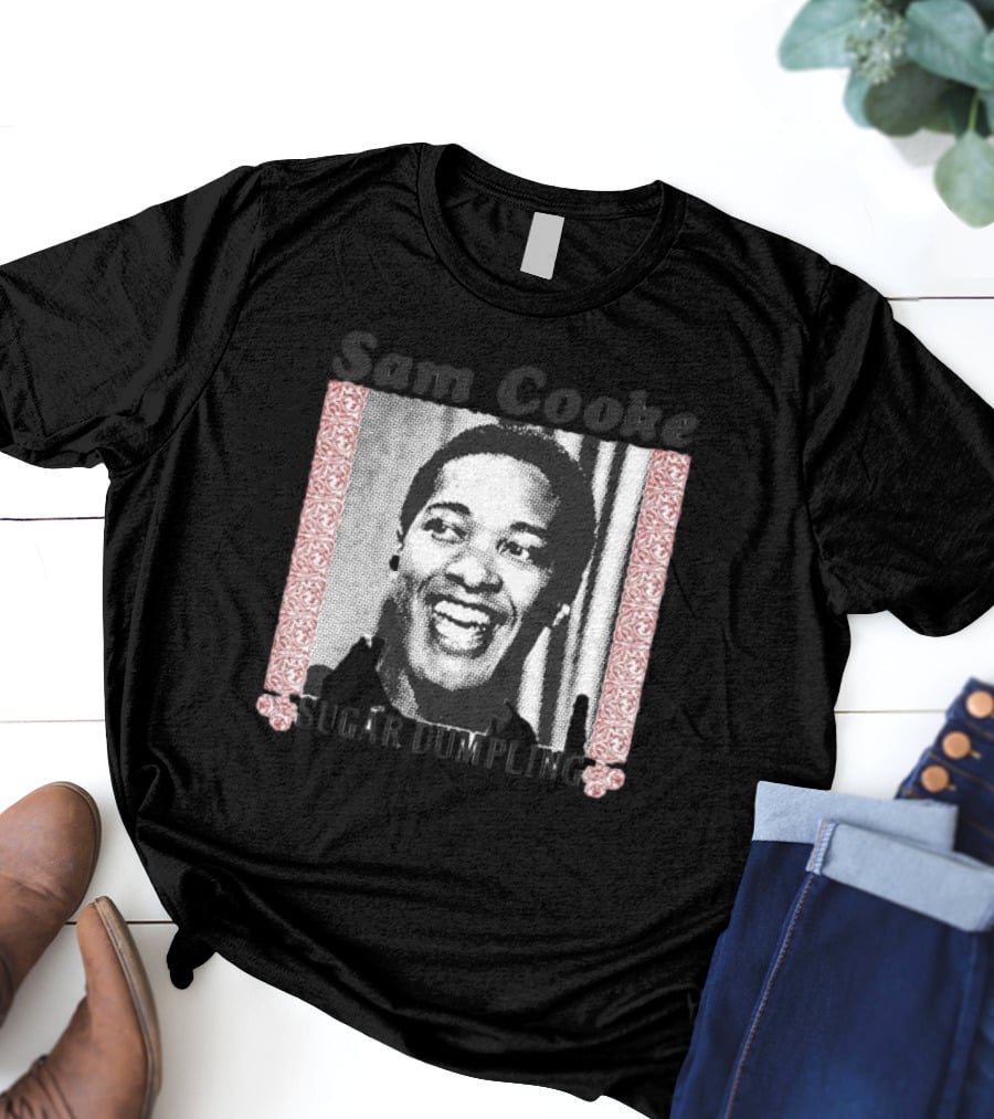 Sam Cooke Sugar Dumpling Smiling Portrait Shirt made from 100% pre-shrunk ring-spun cotton, unisex regular fit based on U.S. standard sizing. The shirt is designed, cut, sewn, and printed in the United States. Available in sizes S-5XL.