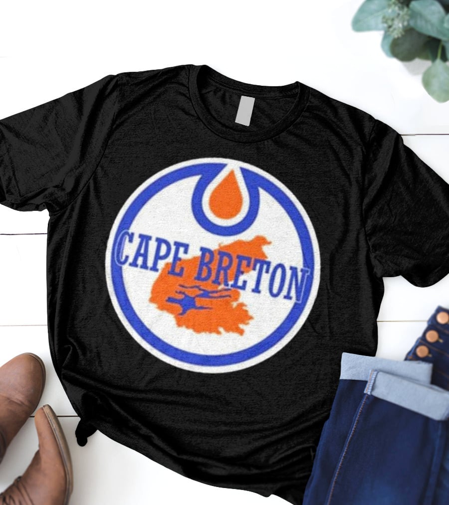 Cape Breton Oilers Hockey Logo Map Shirt made from 100% pre-shrunk ring-spun cotton, unisex regular fit based on U.S. standard sizing. The shirt is designed, cut, sewn, and printed in the United States. Available in sizes S-5XL.