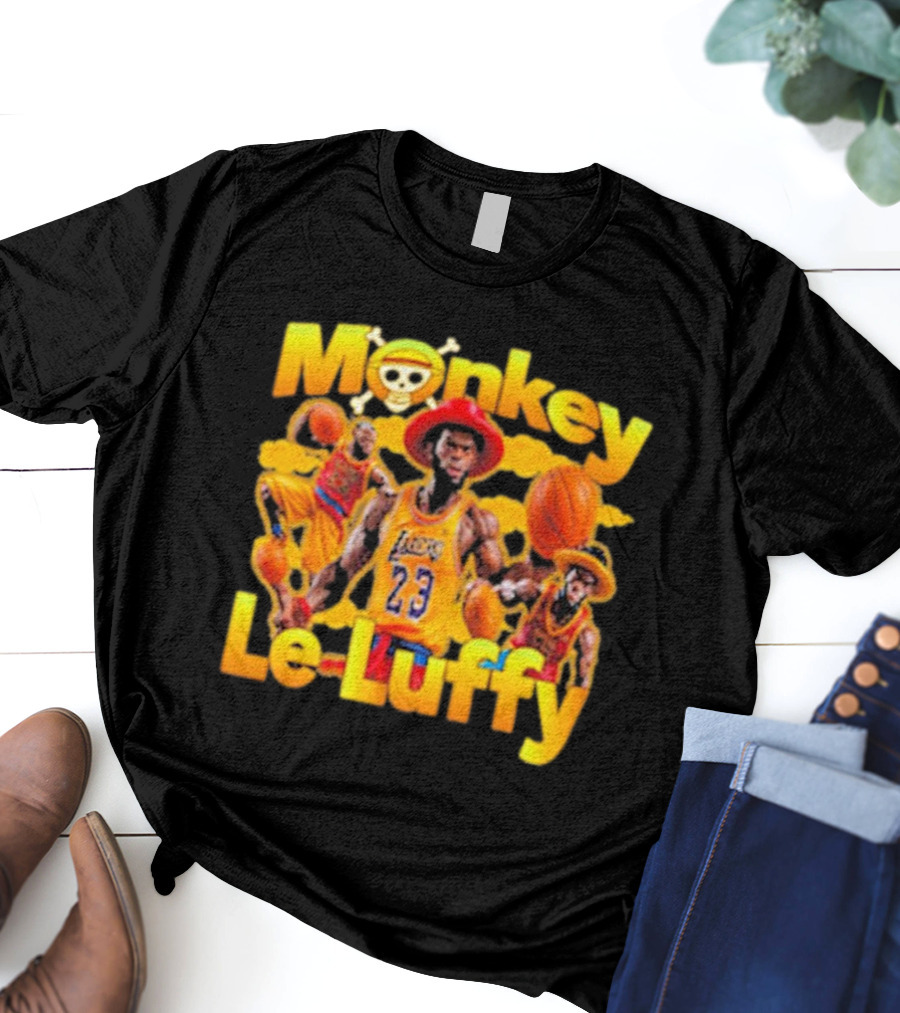 Monkey Le Luffy Lakers Basketball Crossbones Hat Shirt made from 100% pre-shrunk ring-spun cotton, unisex regular fit based on U.S. standard sizing. The shirt is designed, cut, sewn, and printed in the United States. Available in sizes S-5XL.