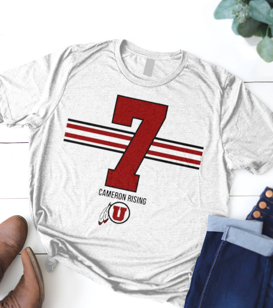 Cameron Rising Utah Utes Number 7 Stripe Shirt made from 100% pre-shrunk ring-spun cotton, unisex regular fit based on U.S. standard sizing. The shirt is designed, cut, sewn, and printed in the United States. Available in sizes S-5XL.