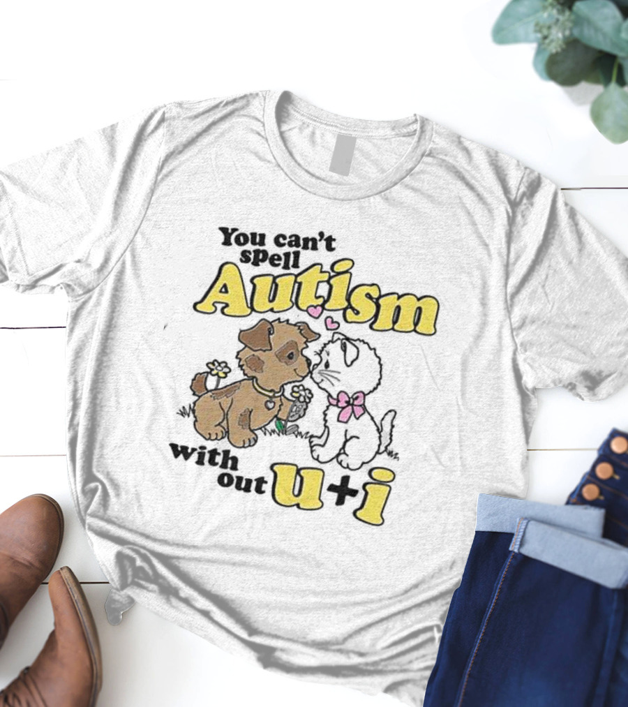 You Can’t Spell Autism Without U + I With Puppy And Kitten Duo T-Shirt