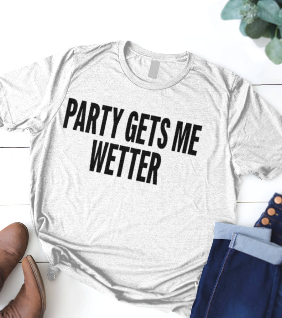 PARTY GETS ME WETTER FUN Shirt made from 100% pre-shrunk ring-spun cotton, unisex regular fit based on U.S. standard sizing. The shirt is designed, cut, sewn, and printed in the United States. Available in sizes S-5XL.
