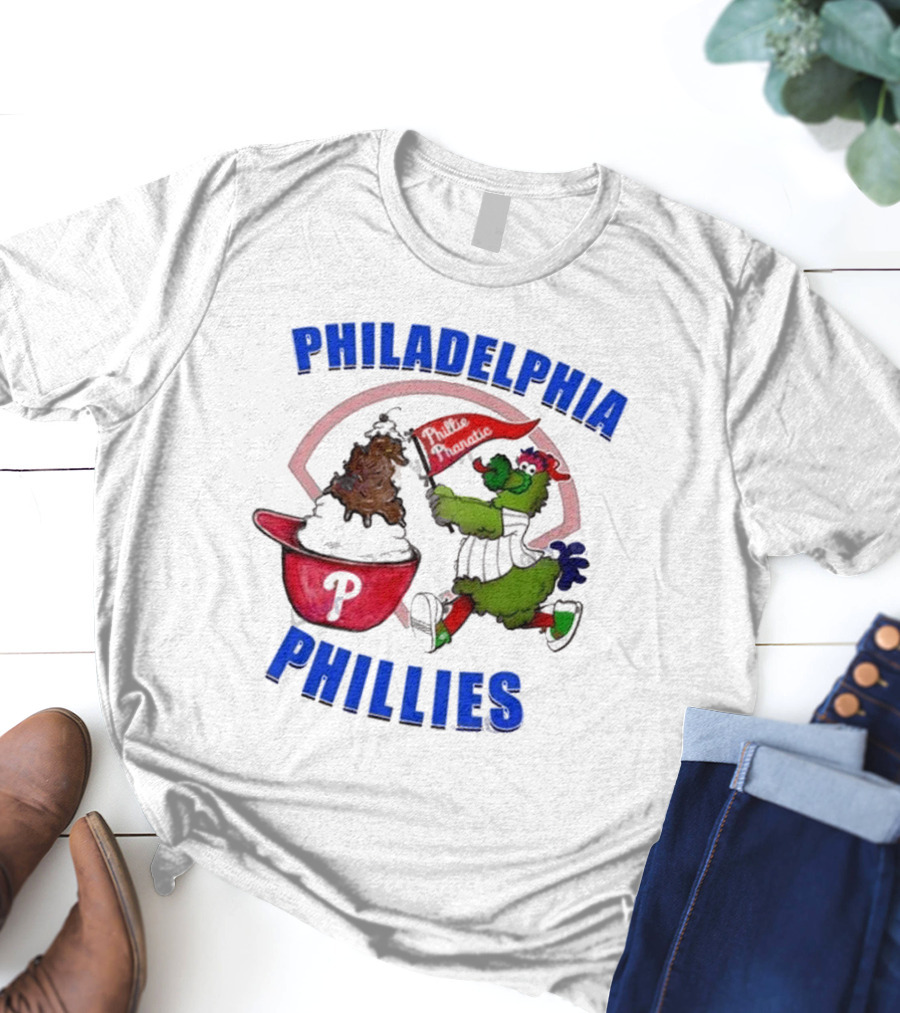 Philadelphia Phillies Phanatic Ice Cream Ring The Bell Shirt made from 100% pre-shrunk ring-spun cotton, unisex regular fit based on U.S. standard sizing. The shirt is designed, cut, sewn, and printed in the United States. Available in sizes S-5XL.