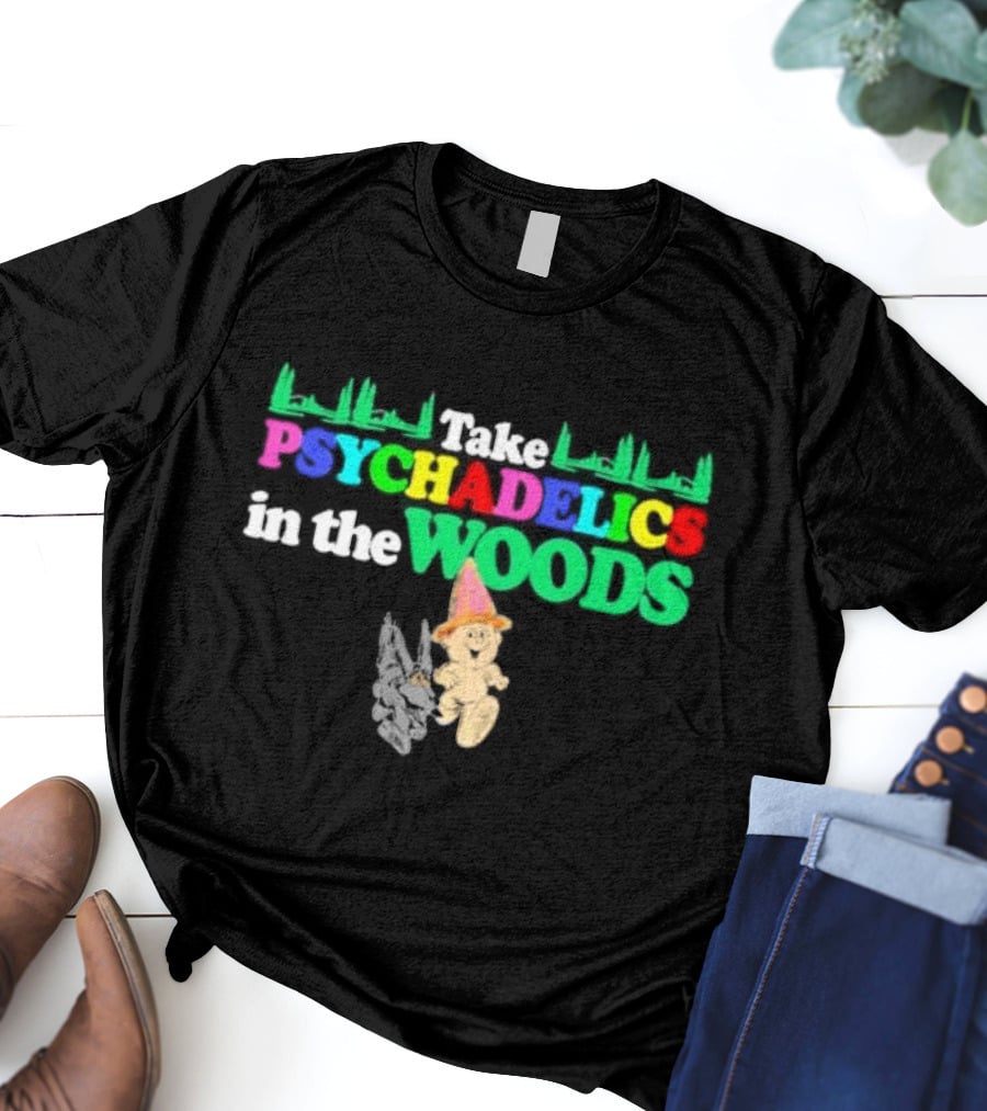 Take Psychedelics In The Woods With Cartoon Bear And Mushrooms T-Shirt