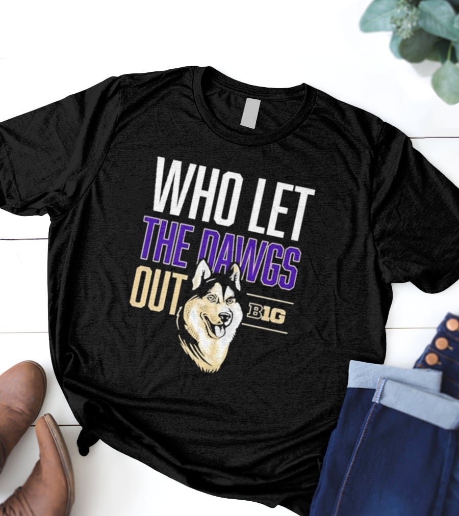 Who Let The Dawgs Out B1G Shirt made from 100% pre-shrunk ring-spun cotton, unisex regular fit based on U.S. standard sizing. The shirt is designed, cut, sewn, and printed in the United States. Available in sizes S-5XL.
