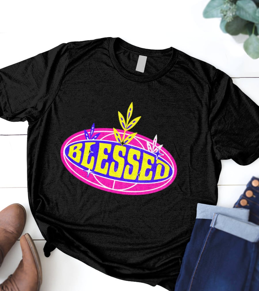 Blessed Vibrant Retro Style Oval Emblem With Leaves T-Shirt