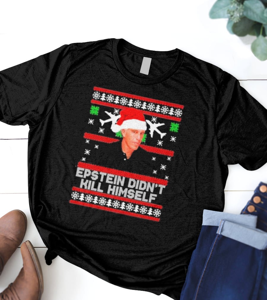 Epstein Didn't Kill Himself Santa Hat Airplane Ugly Christmas T-Shirt