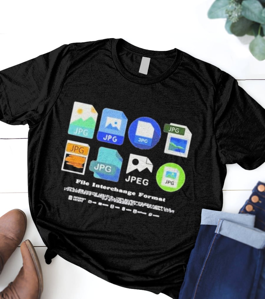 Jpegmafia File Interchange Format Distressed Thumbnails Shirt made from 100% pre-shrunk ring-spun cotton, unisex regular fit based on U.S. standard sizing. The shirt is designed, cut, sewn, and printed in the United States. Available in sizes S-5XL.
