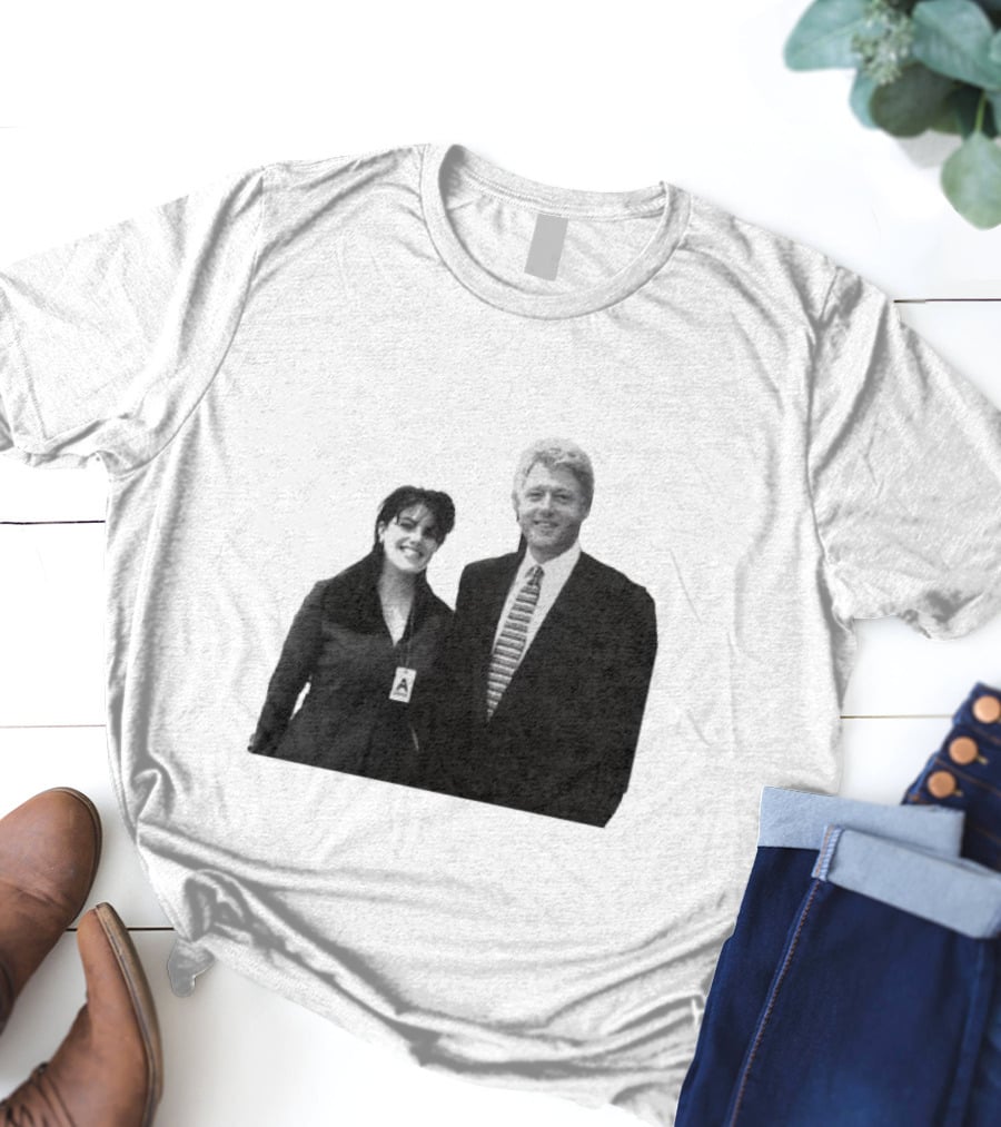 Bill Clinton Monica Lewinsky Black and White Iconic Photo Shirt made from 100% pre-shrunk ring-spun cotton, unisex regular fit based on U.S. standard sizing. The shirt is designed, cut, sewn, and printed in the United States. Available in sizes S-5XL.