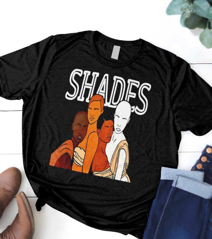 SHADES Ryan Clark Wear Shades Color Skin Shirt made from 100% pre-shrunk ring-spun cotton, unisex regular fit based on U.S. standard sizing. The shirt is designed, cut, sewn, and printed in the United States. Available in sizes S-5XL.