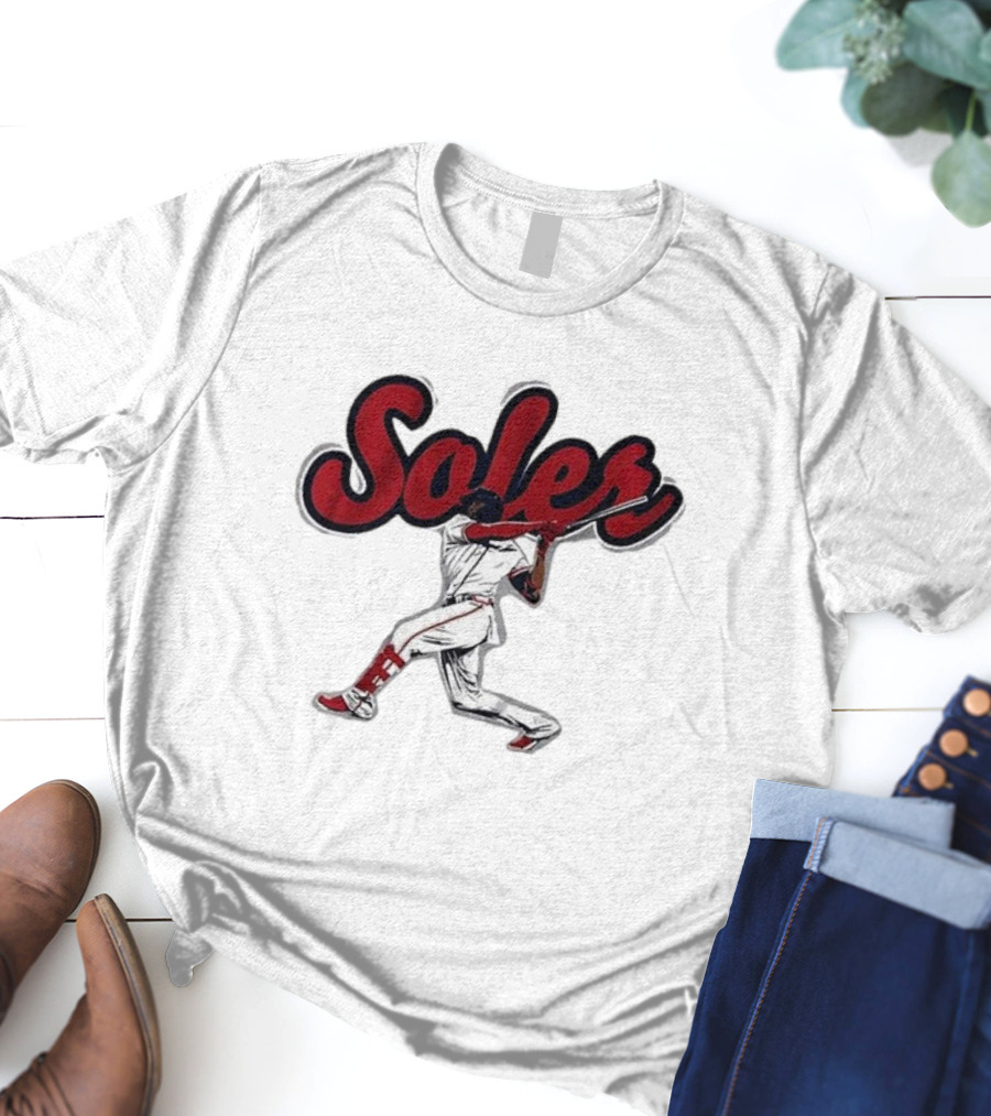 Jorge Soler Baseball Slugger Swing Motion Shirt made from 100% pre-shrunk ring-spun cotton, unisex regular fit based on U.S. standard sizing. The shirt is designed, cut, sewn, and printed in the United States. Available in sizes S-5XL.