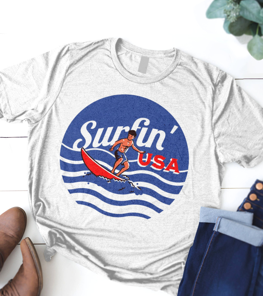 Surfin' USA Surfboard Waves Circle Shirt made from 100% pre-shrunk ring-spun cotton, unisex regular fit based on U.S. standard sizing. The shirt is designed, cut, sewn, and printed in the United States. Available in sizes S-5XL.
