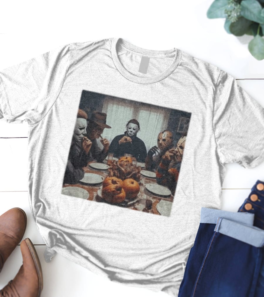 Halloween Characters Dinner Horror Icons Gathering T-Shirt