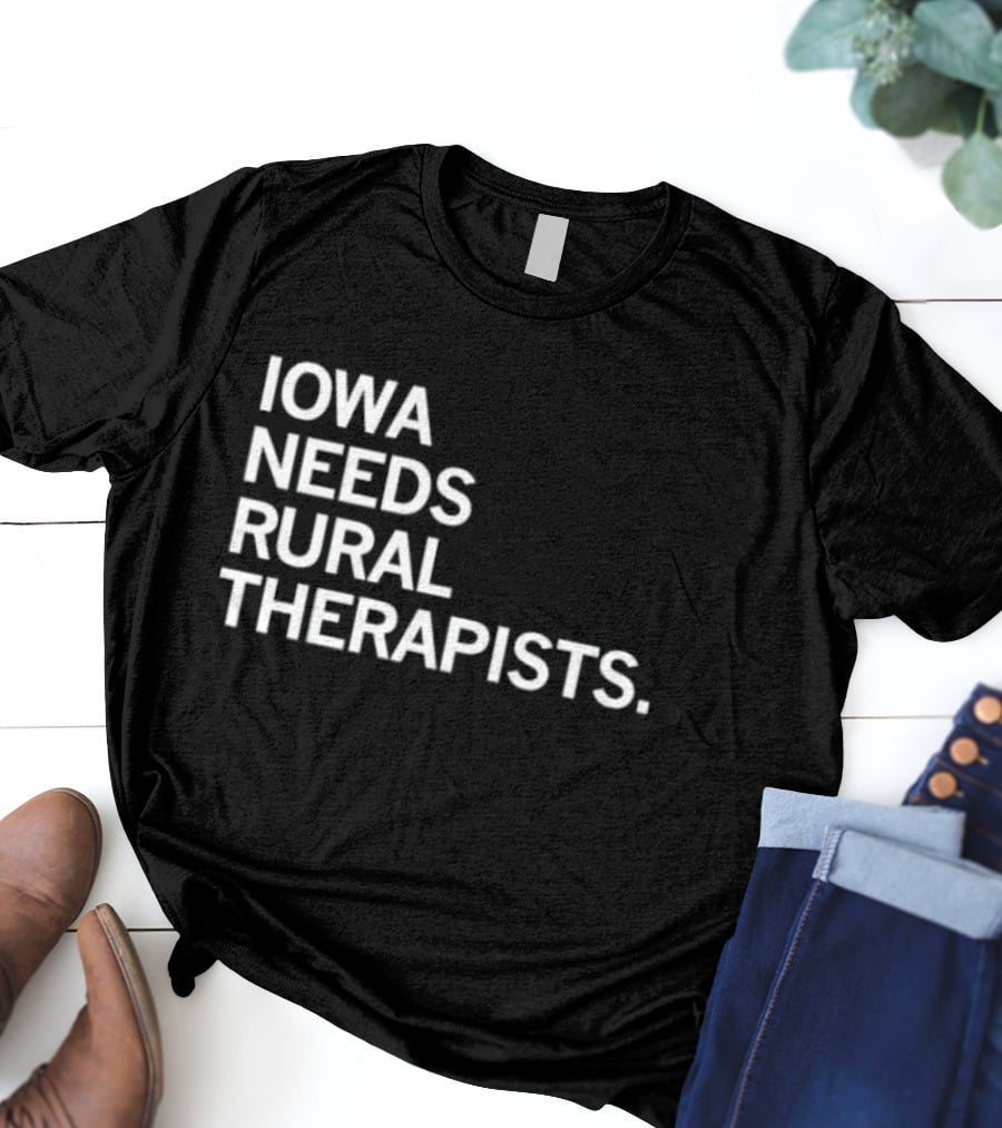 Iowa Needs Rural Therapists Shirt made from 100% pre-shrunk ring-spun cotton, unisex regular fit based on U.S. standard sizing. The shirt is designed, cut, sewn, and printed in the United States. Available in sizes S-5XL.