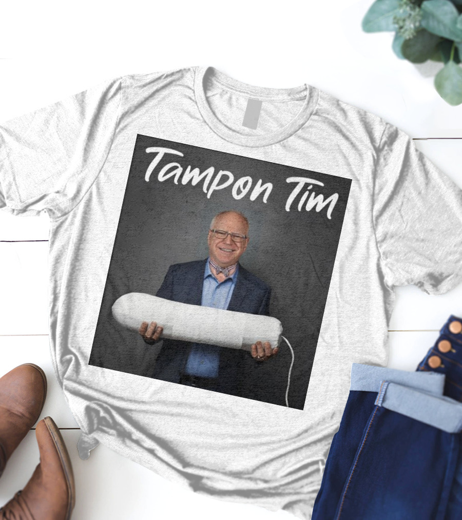 Johnny Midnight Tampon Tim Walz Shirt made from 100% pre-shrunk ring-spun cotton, unisex regular fit based on U.S. standard sizing. The shirt is designed, cut, sewn, and printed in the United States. Available in sizes S-5XL.