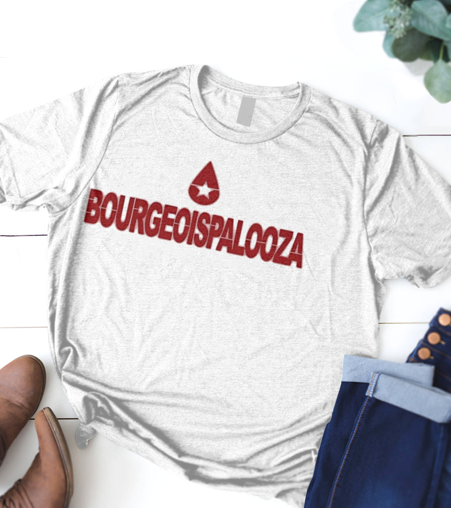 Bourgeoispalooza Red Star Droplet Shirt made from 100% pre-shrunk ring-spun cotton, unisex regular fit based on U.S. standard sizing. The shirt is designed, cut, sewn, and printed in the United States. Available in sizes S-5XL.