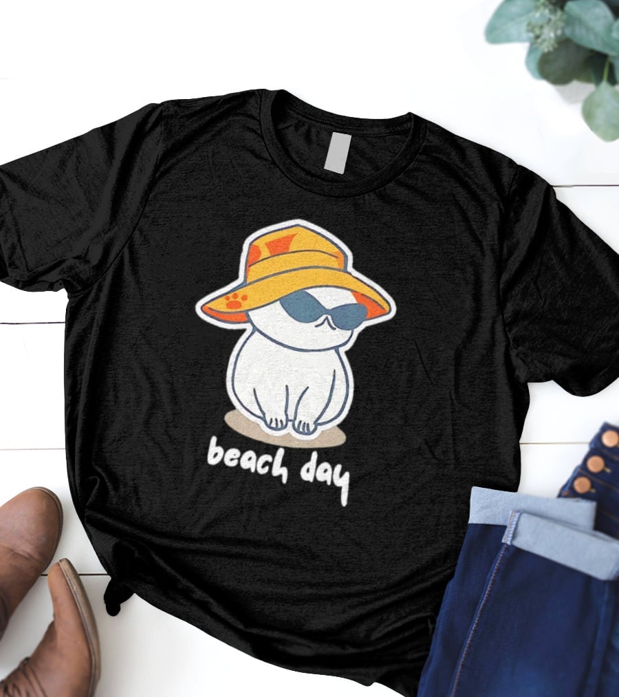Cat Relaxing In Sunglasses And Hat For A Beach Day T-Shirt